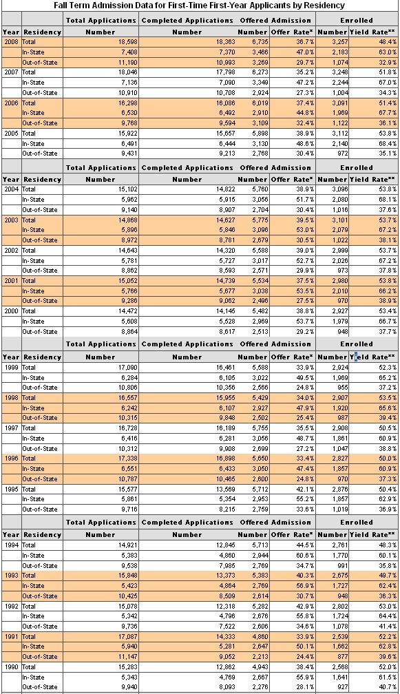 Enrollment goal (Class of 2013): 3,240 first-year students